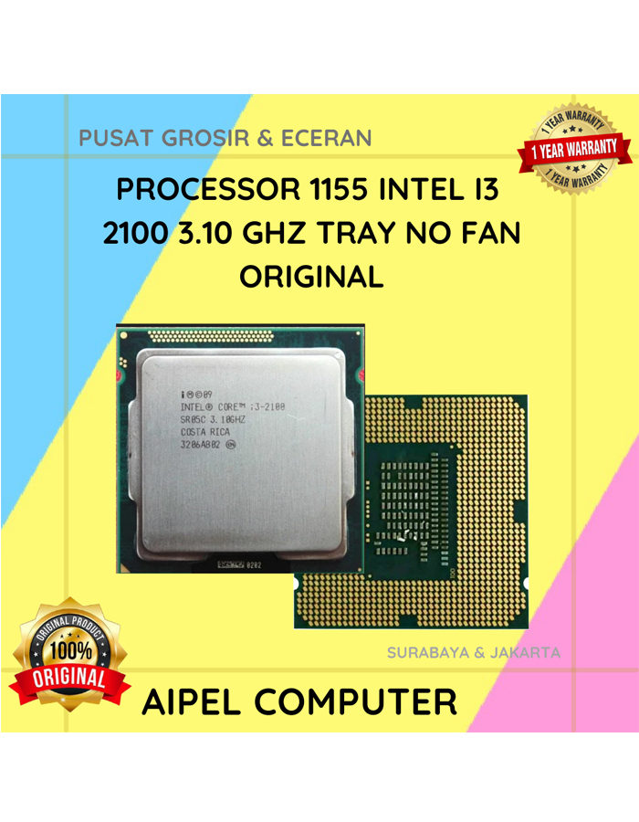 Processor INTEL I3 2100 3.10 GHz Tray No Fan Original bisa langsung kamu dapatkan di Aipel Computer, tempat belanja favorit pelanggan Surabaya dan sekitarnya! Kami dikenal dengan pilihan produk komputer berkualitas, harga bersahabat, dan tentunya Garansi Prima.