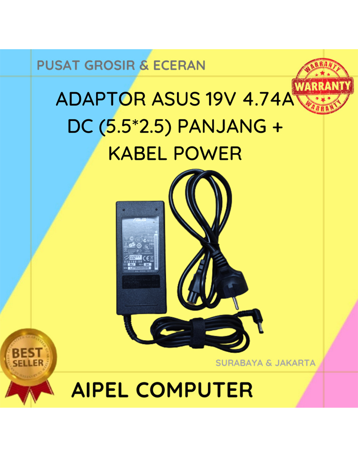 ASUS194745525PKP | ADAPTOR ASUS 19V 4.74A DC (5.5*2.5) PANJANG + KABEL POWER