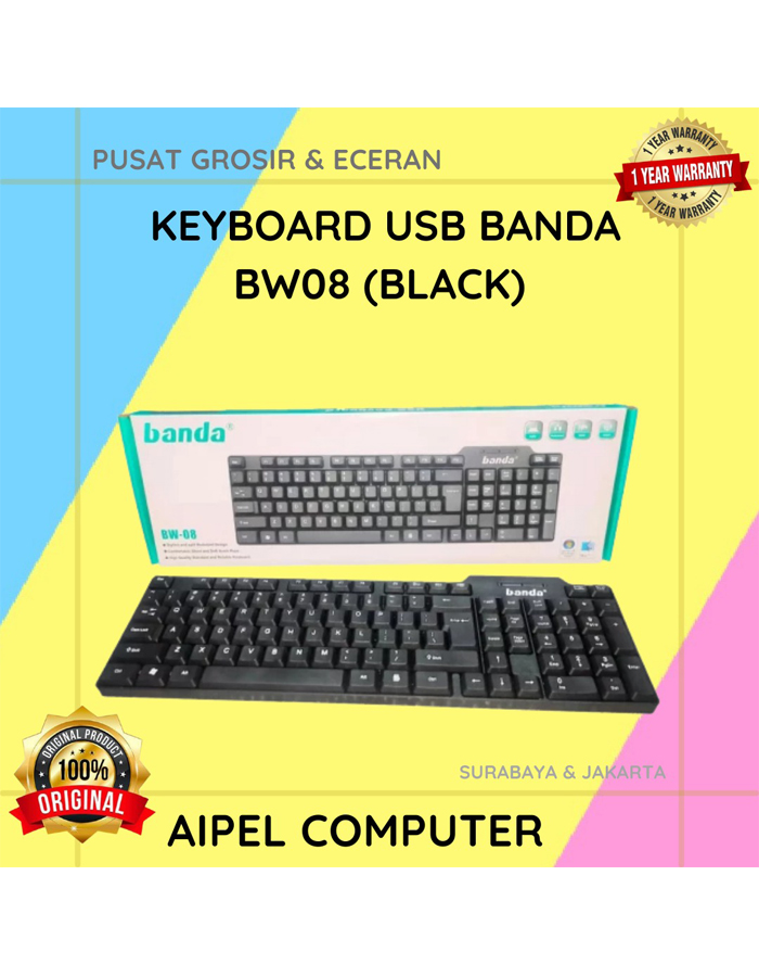 Keyboard USB BANDA bisa langsung kamu dapatkan di Aipel Computer, tempat belanja favorit pelanggan Surabaya dan sekitarnya! Kami dikenal dengan pilihan produk komputer berkualitas, harga bersahabat, dan tentunya Garansi Prima.