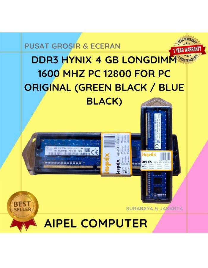 D3H4L | DDR3 HYNIX 4 GB LONGDIMM 1600 MHZ PC 12800 FOR PC ORIGINAL (GREEN BLACK / BLUE BLACK)