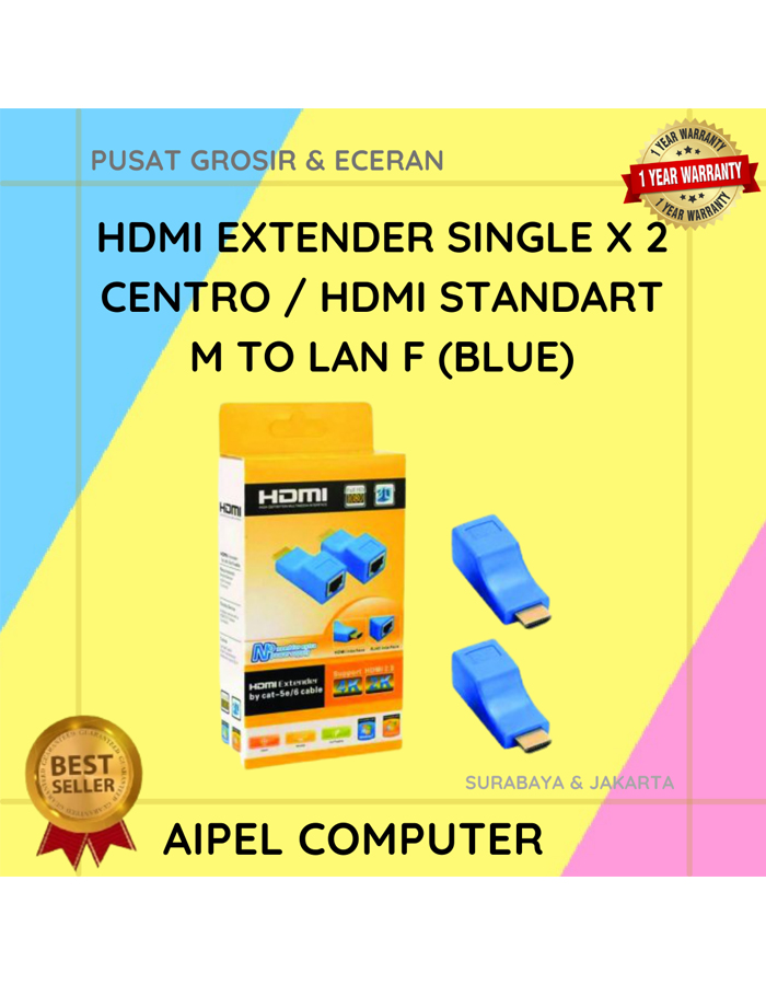 HDTV Extender Single X 2 CENTROO 30 M Non Adaptor / HDTV Standart M To LAN F 30 M (Blue) bisa langsung kamu dapatkan di Aipel Computer, tempat belanja favorit pelanggan Surabaya dan sekitarnya! Kami dikenal dengan pilihan produk komputer berkualitas, harga bersahabat, dan tentunya Garansi Prima.