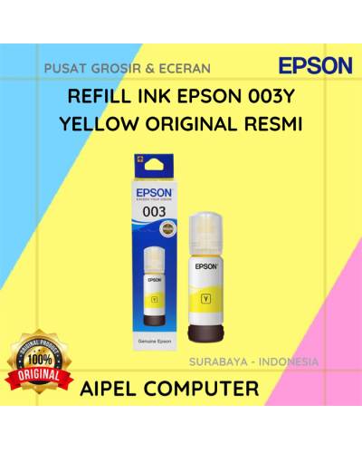 Refill Ink EPSON 003Y Yellow Original 100 % bisa langsung kamu dapatkan di Aipel Computer, tempat belanja favorit pelanggan Surabaya dan sekitarnya! Kami dikenal dengan pilihan produk komputer berkualitas, harga bersahabat, dan tentunya Garansi Prima